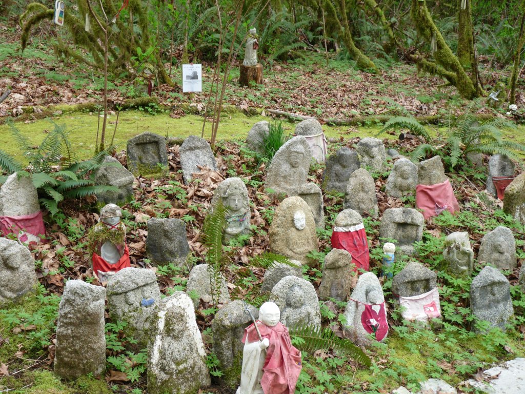 Great Vow is dedicated to Jizo Bodhisattva, the protector of children, which seems appropriate for a monastery headed by a woman who is a pediatrician as well as a Zen teacher. There must be hundreds of Jizo statues throughout the building and in an extensive Jizo Garden, where people have left statues in commemoration of lost, sick, or dead children. They are decorated with scarves and knitted hats; some even have booties.