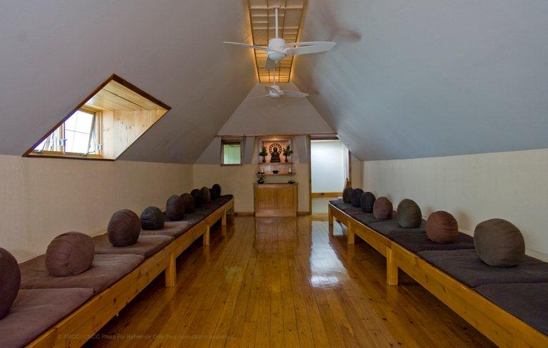 Extensive remodelling was required; Albert described the interior of the main house as more suitable to a brothel than a Zen Center. Further renovations were needed to transform a separate structure on the property—a small building which had previously been a schoolhouse and then an auto mechanic’s garage—into a meditation hall. The zendo proper was established on the second floor with raised tans and seating for twenty-eight.