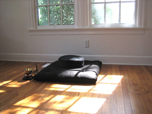 “And did you immediately get a cushion and try to follow the instructions in the book?” I ask.