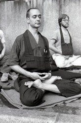 Gail (later Sunyana) Graef was one of those youth. Now a Kapleau heir with her own center in Vermont, she told me there was some irony in the approach he took. “Roshi Kapleau had spent thirteen years in Japan, and the interesting thing about him is that when he was at Harada Roshi’s monastery, it was very strict, very samurai, very – you know – the stick was used and shouts and blows and that whole style of Zen. And he didn’t penetrate his koan when he was there. Finally, he went to Yasutani Roshi’s monastery, which was run be a little old lady. It was very small, very lay oriented, completely different atmosphere, and it was there that he had his break-through. When he came to the US, what style did he bring? Harada Roshi’s style! The stick was used fiercely. It was used – I think – inappropriately.”