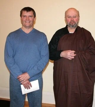 “I kept doing sesshins and worked closely with John. I had started teaching at PZI, started hosting dokusans at PZI sesshins, and I worked with David Weinstein a lot. The Center in London continued growing; I had John come to London for workshops which people really liked. Then John gave me Dharma Transmission and I became a Roshi. John came up here for the Dharma Transmission ceremony in London. I remember it was February. It was freezing cold. The ladies at our Centre made ice candles and placed them all around the porch at the centre. John and I were guided into to the Center by ice candles on that dark and cold winter night in Ontario. The ceremony was very warm. And then afterwards we drank Japanese whiskey late into the night.”